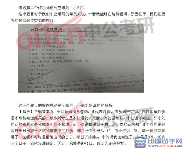 留学群第一时间解析真题发现,逻辑试题最后一道题居然出现错误,希望这种错误不会给广大考生答题产生影响,原题如下图所示: