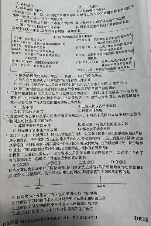 | 3 | 2018年初中历史学业水平考试模拟题及答案(3) |