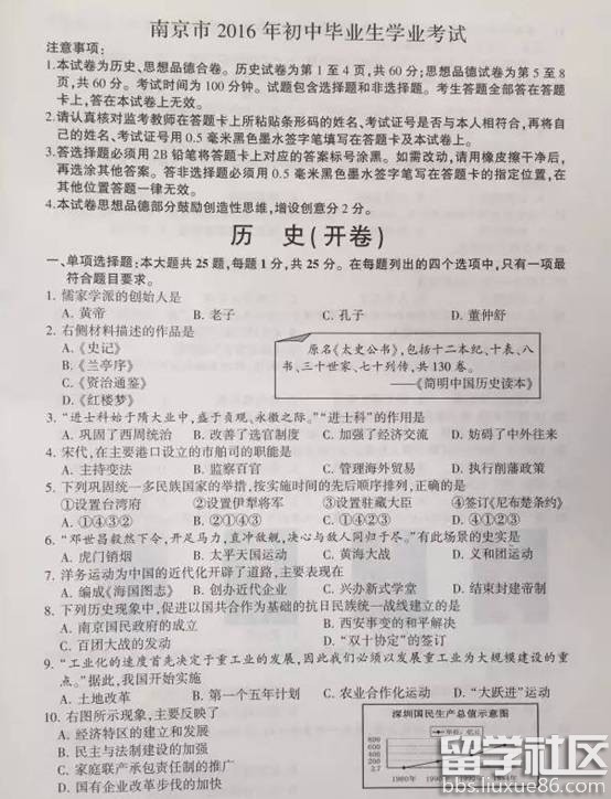 一份耕耘,一份收获;走稳每一步,做自己该做的事。留学群中考频道第一时间为您公布2016年南京中考历史真题及答案,希望对您有所帮助,欢迎您访问留学群浏览更多中考资讯,了解最新信息请按CTRL F5刷新页面。更多南京中考分数线、南京中考成绩查询、南京中考志愿填报、南京中考录取查询信息等信息请关注我们网站的更新!