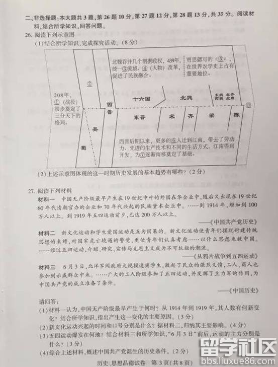 年轻人,不怕别人看不起,就怕自己不争气。留学群中考频道第一时间为您公布2017年南京中考历史真题及答案,希望对您有所帮助,欢迎您访问留学群查看更多中考资讯,了解最新信息请按CTRL F5刷新页面。更多南京中考分数线、南京中考成绩查询、南京中考志愿填报、南京中考录取查询信息等信息请关注我们网站的更新!