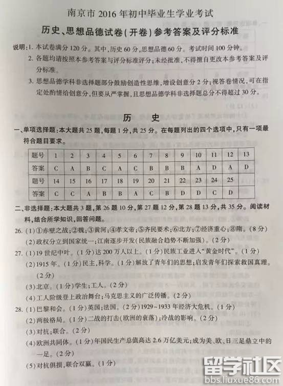 九年卧薪尝胆,六月一马冲关。留学群中考频道第一时间为您公布南京中考历史真题及答案2016,希望对您有所帮助,欢迎您访问留学群浏览更多中考资讯,了解最新信息请按CTRL F5刷新页面。更多南京中考分数线、南京中考成绩查询、南京中考志愿填报、南京中考录取查询信息等信息请关注我们网站的更新!