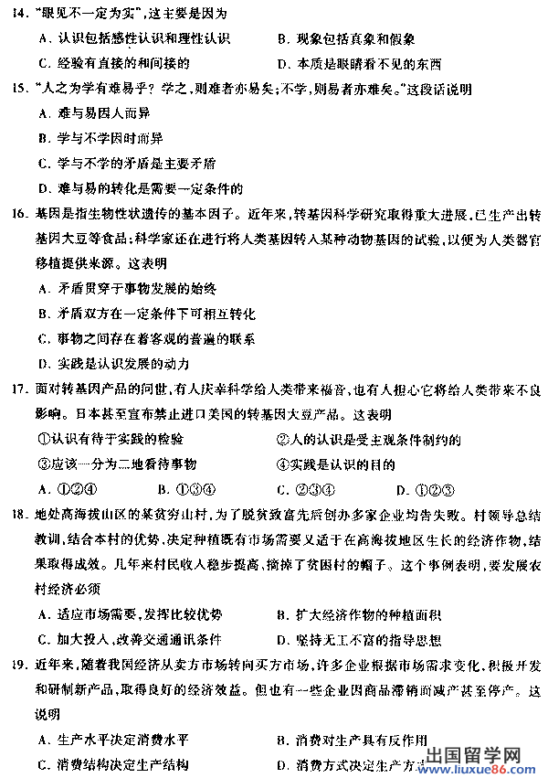 以下《考研政治历年真题客观题解析》由留学群考研政治频道为您精心提供,欢迎大家浏览参考。