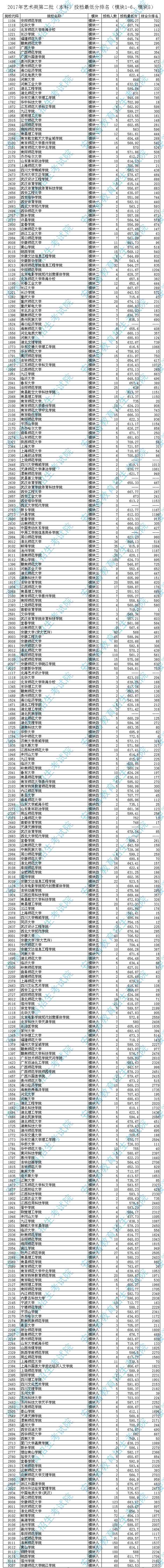 2017安徽艺术类本科第二批投档最低分排名(2)