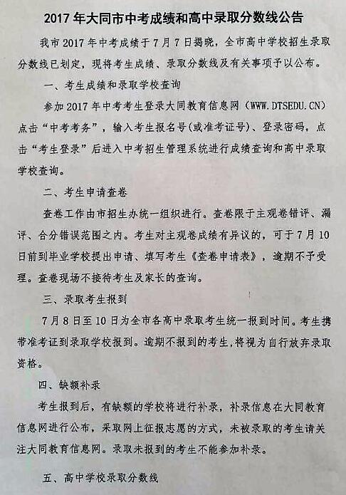 2013中考大幕已经落下,众家长和考生最关心的莫过于中考录取查询,由于2013山西大同中考分数线暂未公布,中考网为中考生们及家长精心提供2013大同中考录取查询等信息,一旦分数线公布,将会在此页显示,内容时时更新,欢迎收藏本网站。