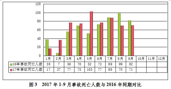 2017年9月,全国共发生房屋市政工程生产安全较大事故2起、死亡6人,比去年同期事故起数减少1起、死亡人数减少3人,同比分别下降33.33%和33.33%(见图4)。