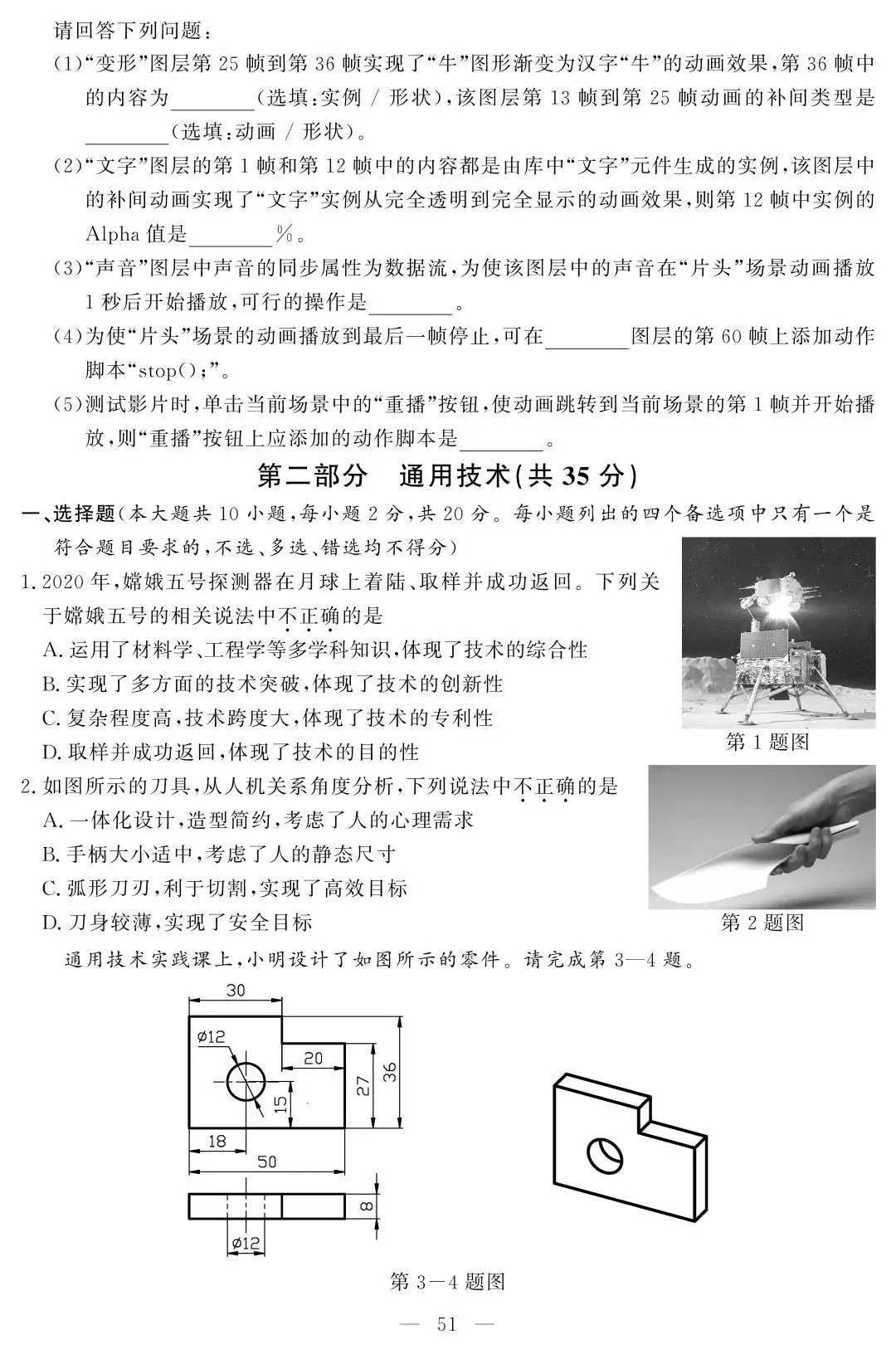 浙江2021年1月普通高中学考试题和参考答案(技术)