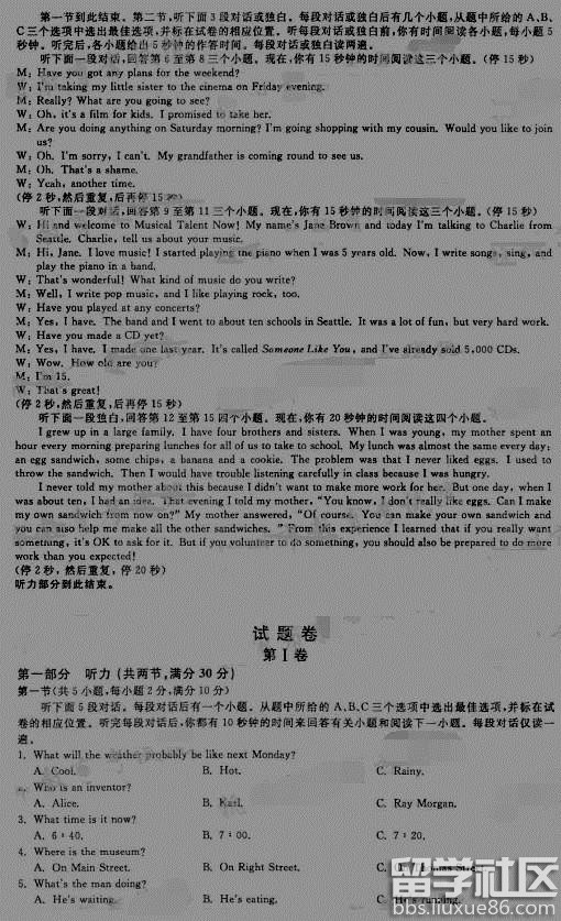 努力就能成功,坚持确保胜利。留学群中考频道的小编会及时为广大考生提供2015年杭州中考英语真题,有需要的考生可以在考题公布后刷新本页面(按ctrl+F5),希望对大家有所帮助。
