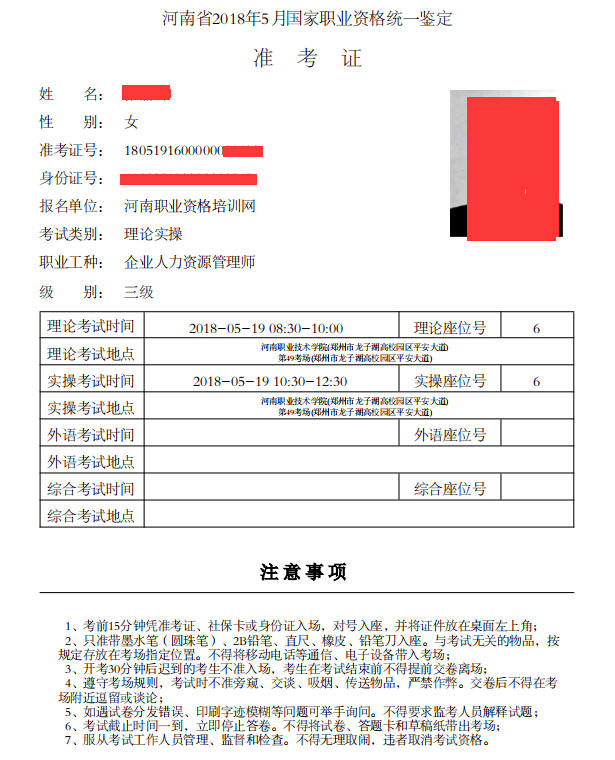2018年5月河南省国家职业资格考试(人力资源管理师、心理咨询师、理财规划师、企业培训师、秘书、育婴师、婚姻家庭咨询师等)准考证已打印完毕,整理完毕后会陆续通知大家领取,现就相关事项通知如下: