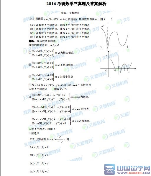 2016考研数学考试结束后,留学群考研专业频道将在第一时间为大家提供2016考研数学三真题及答案解析(完整版),希望能帮助大家顺利估分!更多2016考研真题及考研答案请关注我们网站的更新!