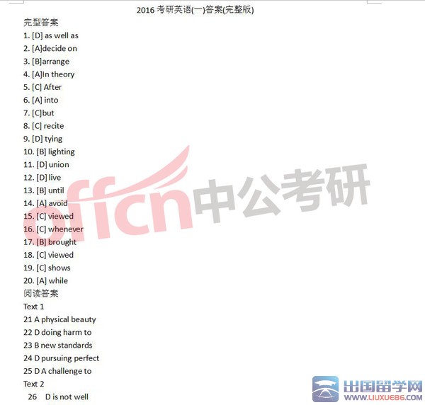 2016年研究生考试已经结束,留学群考研频道小编紧密关注2016考研真题及答案,并在考后第一时间为大家公布2016考研英语二答案解析,建议您收藏本网站 (ctrl+D收藏即可)。更多考研信息请关注我们网站的更新!