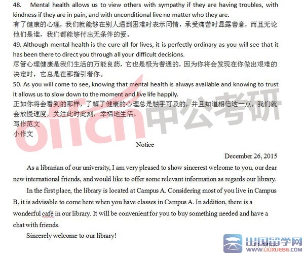 2016年研究生考试已经结束,留学群考研频道小编紧密关注2016考研真题及答案,并在考后第一时间为大家公布2016考研英语二真题及答案解析,建议您收藏本网站 (ctrl+D收藏即可)。更多考研信息请关注我们网站的更新!