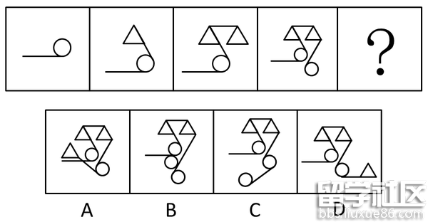 2、从所给的四个选项中,选择最合适的一个填入问号处,使之呈现一定的规律性: