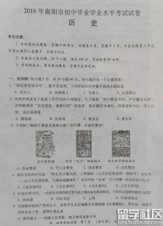 如果惧怕前面跌宕的山岩,生命就永远只能是死水一潭。留学群衡阳中考历史试题及答案频道的小编会及时为广大考生提供2016年衡阳中考历史试题及答案,有需要的考生可以在考题公布后刷新本页面(按ctrl加F5),希望对大家有所帮助。