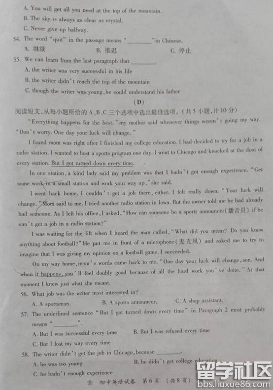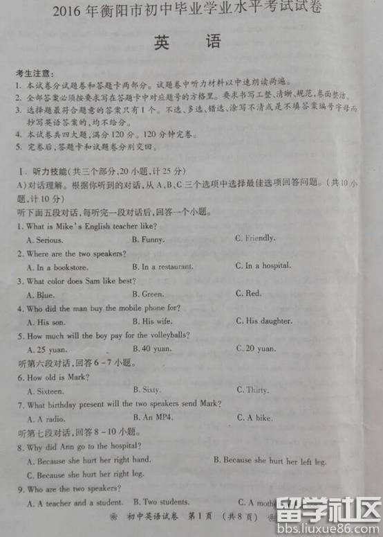 中考是人生至关重要的转折点,希望考生们能不负众望,取得好成绩。本文“2016年湖南省衡阳市中考英语试卷”请关注留学群中考频道!