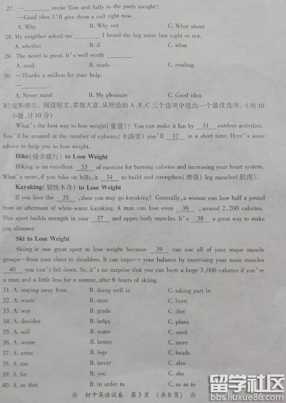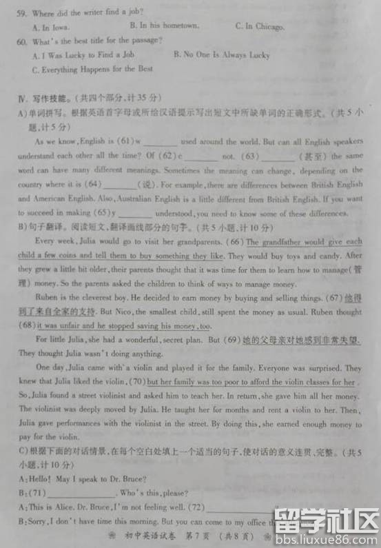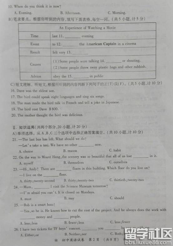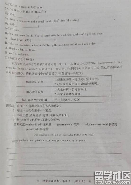 驾驭命运的舵是奋斗。不抱有一丝幻想,不放弃一点机会,不停止一日努力。留学群中考频道的小编会及时为广大考生提供:2015年湖南衡阳市中考英语试题及答案,有需要的考生可以在考题公布后刷新本页面(按ctrl+F5),希望对大家有所帮助。