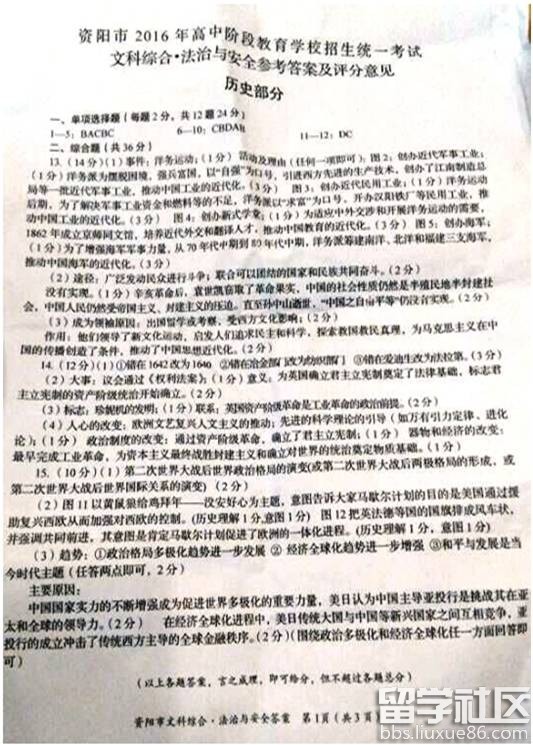 每个人都蕴含着无限的潜力,发掘它会得到意想不到的结果。留学群资阳中考历史试题及答案频道的小编会及时为广大考生提供2016年资阳中考历史试题及答案,有需要的考生可以在考题公布后刷新本页面(按ctrl加F5),希望对大家有所帮助。