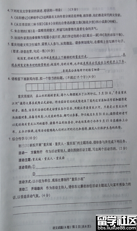 留学群专题频道重庆中考语文A卷试题栏目,提供与重庆中考语文A卷试题相关的所有资讯,希望我们所做的能让您感到满意!