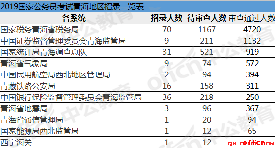 截止到25日9时,通过审核人数前三位的部门依次是:国家税务青海省税务局、中国证券监督管理委员会青海监管局、国家统计局青海调查总队,三部门通过审核总人数达1340人,占通过审核总人数的62%。