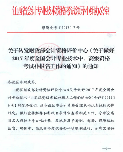 与鹰潭中级会计师补报名通知相关的中级会计职称报名