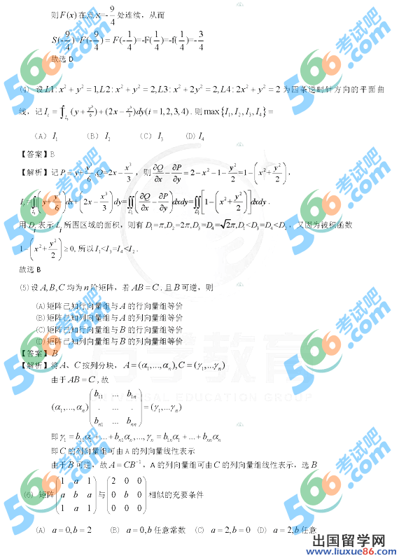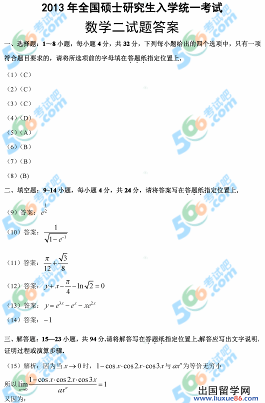 以下2013考研数学二真题由留学群考研数学真题频道为为您精心提供,欢迎大学参考。