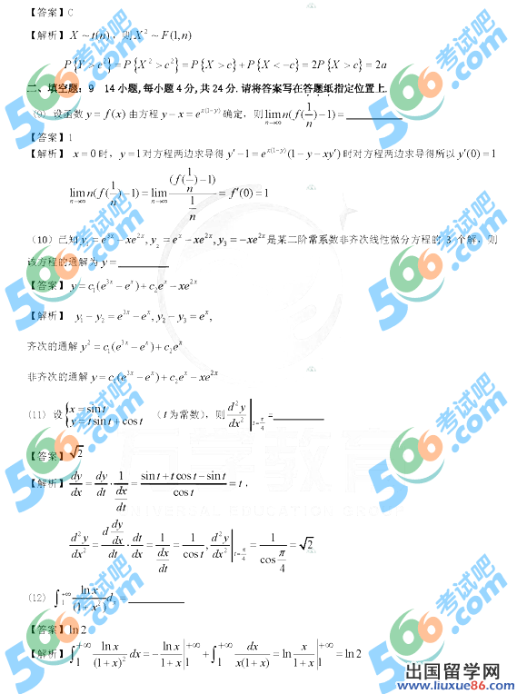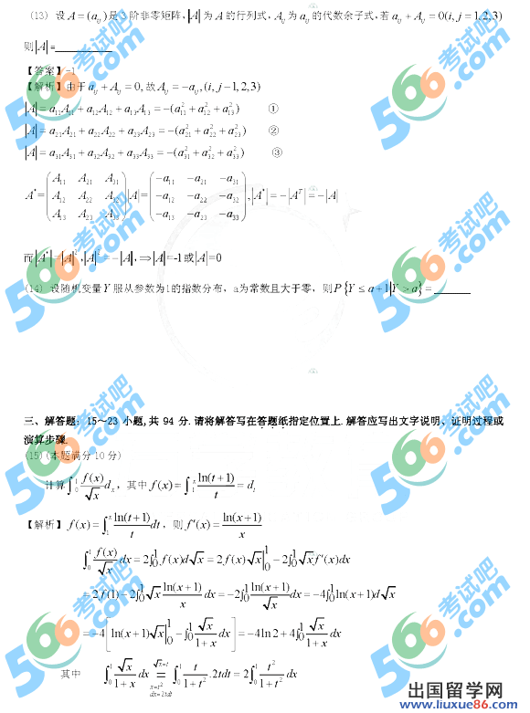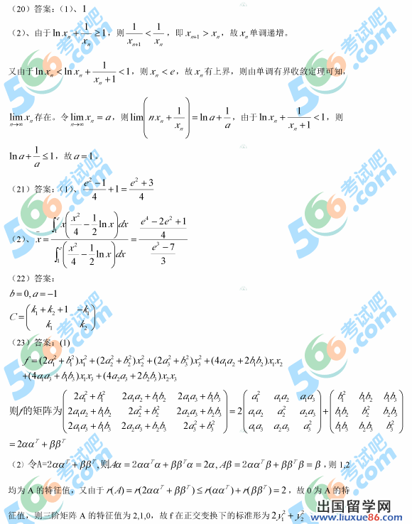考研数学答案推荐链接: