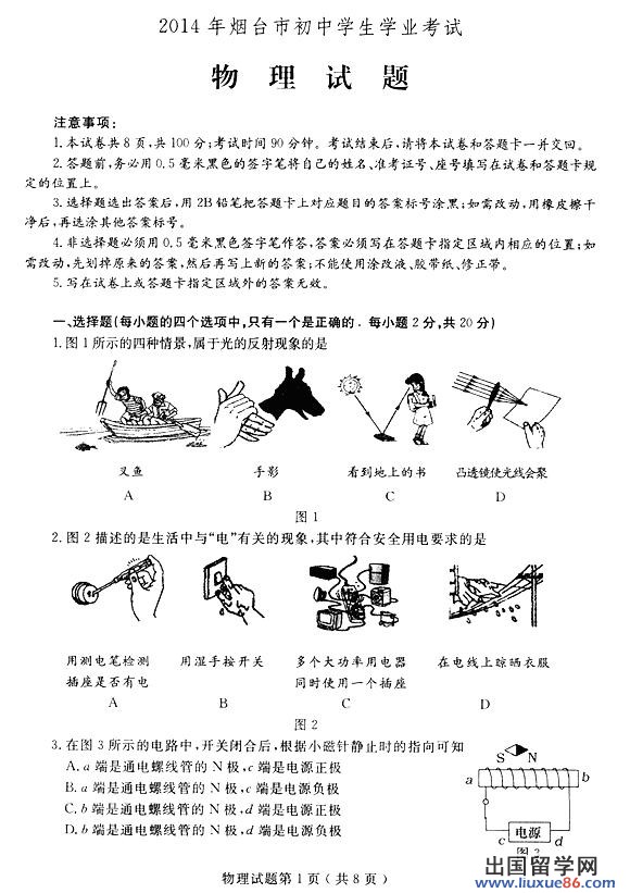 以下2014年烟台中考物理真题及答案由留学群中考频道第一时间为您提供,希望对您有所帮助!