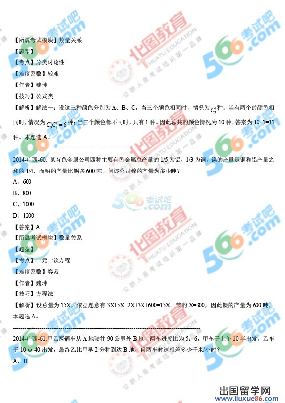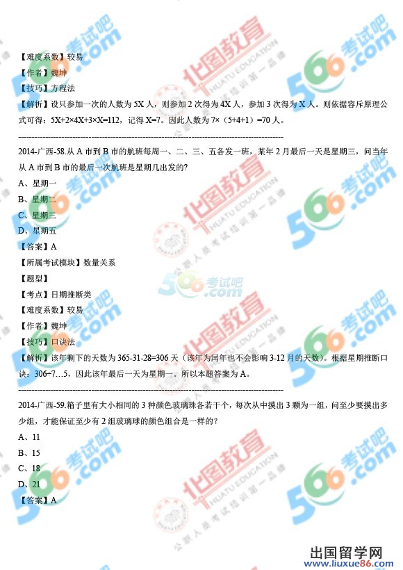 | 2014年广西公务员考试行测真题及答案解析 | ||||||