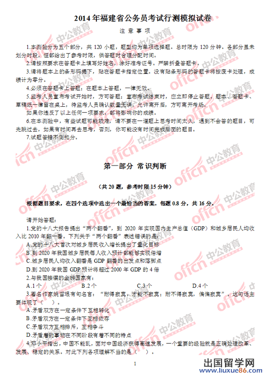 以下2014年福建公务员考试行测模拟试题及答案由留学群公务员频道为您提供,希望对您有用!