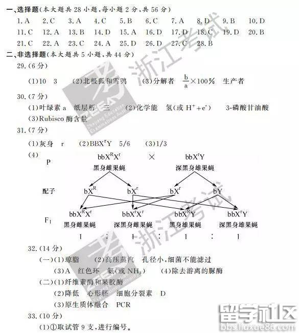 留学群高考网为大家提供2016年10月浙江新高考学考选考生物答案,更多高考资讯请关注我们网站的更新!
