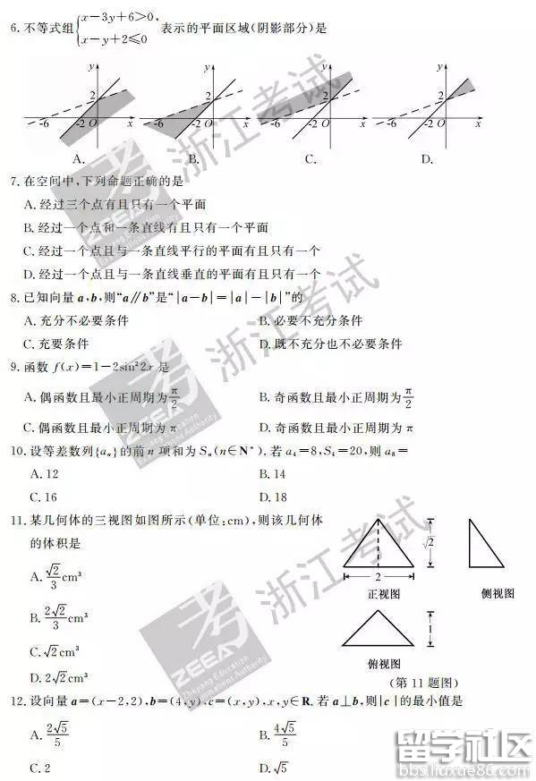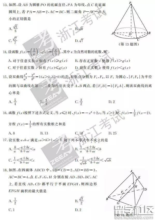 2016年10月浙江新高考学考选考数学试题及答案已公布