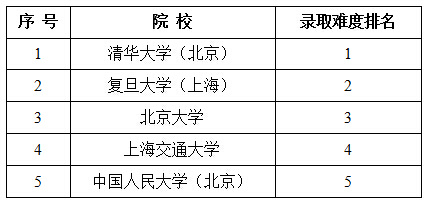 江苏本一批文科全国高校录取难度排行前五