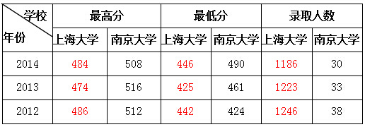 表格对比明显:2012年上海大学在上海的最低录取分数高过南京大学,近两年却都比南京大学低;近3年上海大学的招生人数之多,却是南京大学在上海招生人数的30多倍!可见上海考生报考本地院校的热情之高。