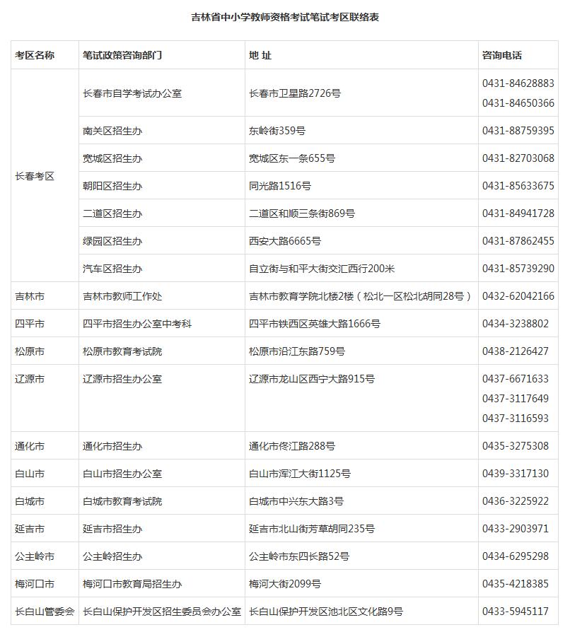 根据《2018上半年吉林教师资格证考试(笔试)公告》可知2018上半年吉林教师资格证考试咨询电话及地址如下:
