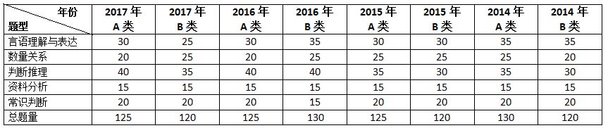 A卷总共40题。B卷总共35题。这部分是行测题量最多的部分,差别在定义判断B卷少2题,类比推理B卷少3题。