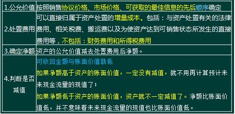 4. 可回收金额:未来现金流量现值与公允价值减去处置费用后的高者。(一定是高者哦,理性经济人考量)。两者有一个高于账面,就不可能存在减值。